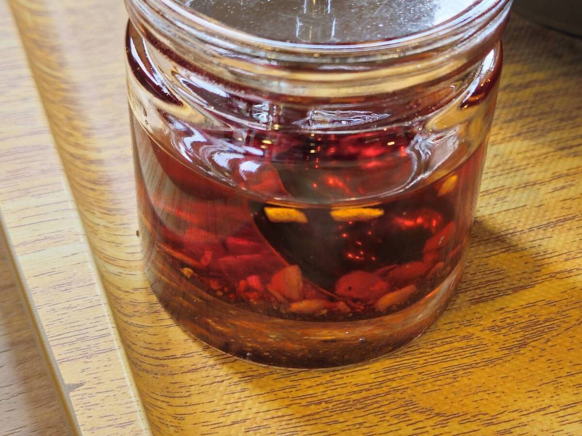 このお店の特徴はラー油をお好みで使いながら食べること!