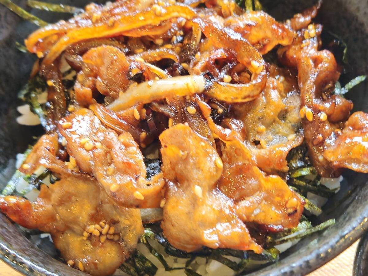 甘じょっぱい味付けの肉丼は、そばを食べたあとでもペロっといけちゃう美味しさ。
