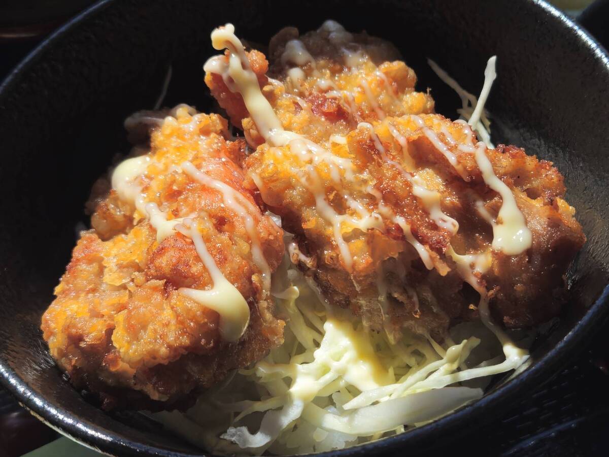 サクジュワの食感が美味しい唐揚げ丼。