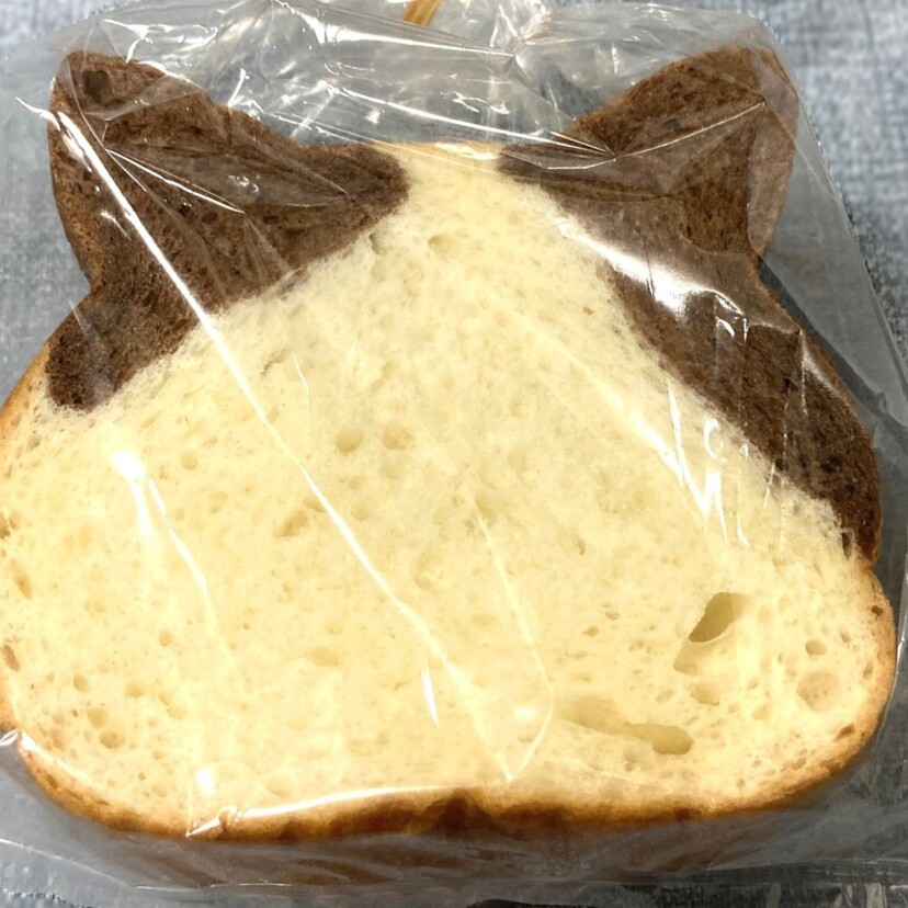 ココア生地のネコ型食パンが2枚入り。サンドイッチにしても、チョコペンで顔を描いても楽しめます。お子さんにも大人気のビジュアルと味わい。