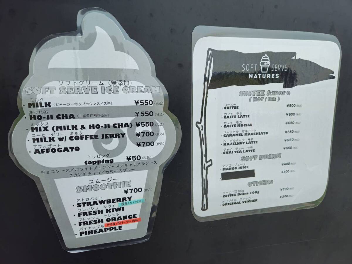 ソフトクリーム、スムージー、コーヒーそれぞれメニューがとても豊富。