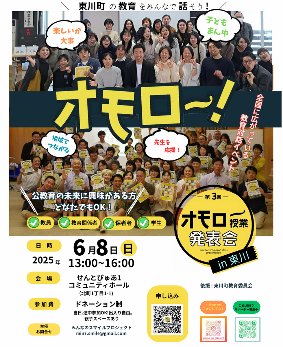 2025年6月8日(日)に東川町のせんとぴゅあ1で『第3回 オモロー授業発表会in東川』が開催されます。