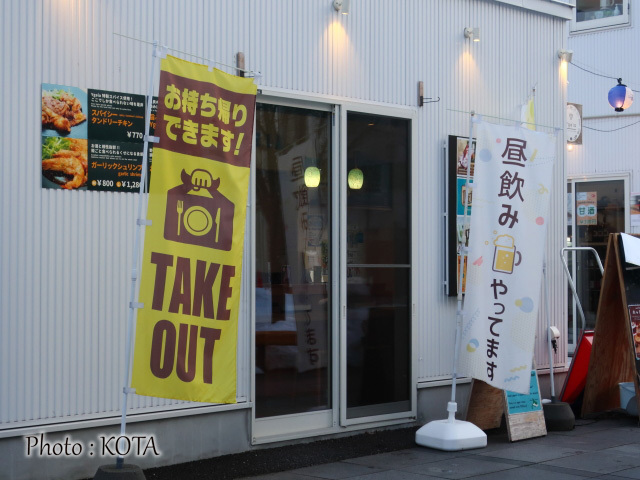 『昼飲みやってます』の旗が、おいでおいでと筆者を誘う(笑)