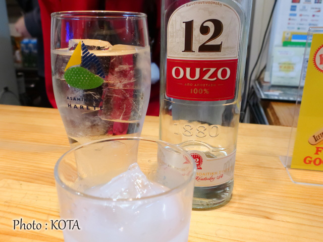 上は、ギリシャのリキュール「OUZO(ウゾ)」(1杯680円)。