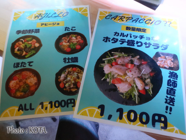 右。ホタテのカルパッチョもある(次回はコレだな)。