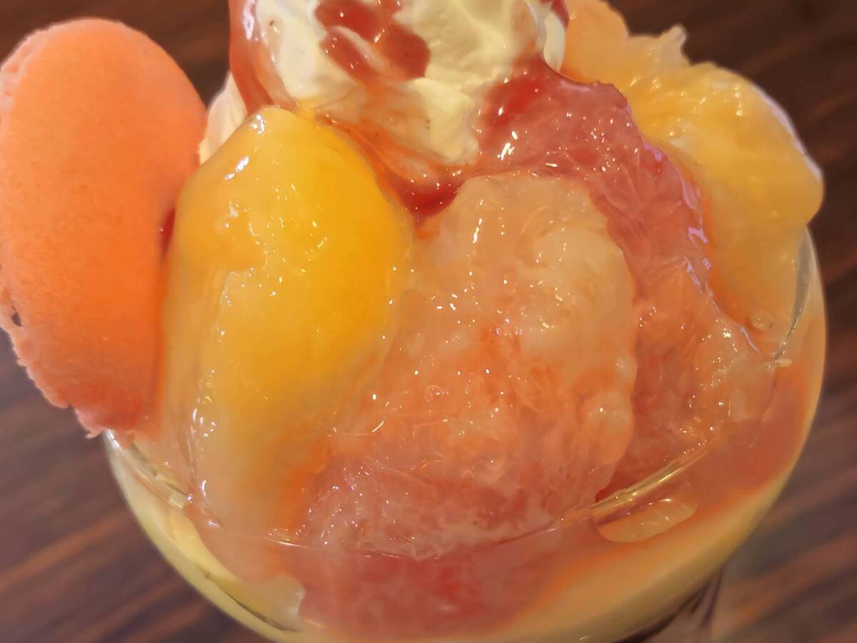 白桃クリーム、白桃ゼリーもしっかり桃の風味があり、上から下まで桃ずくめ!