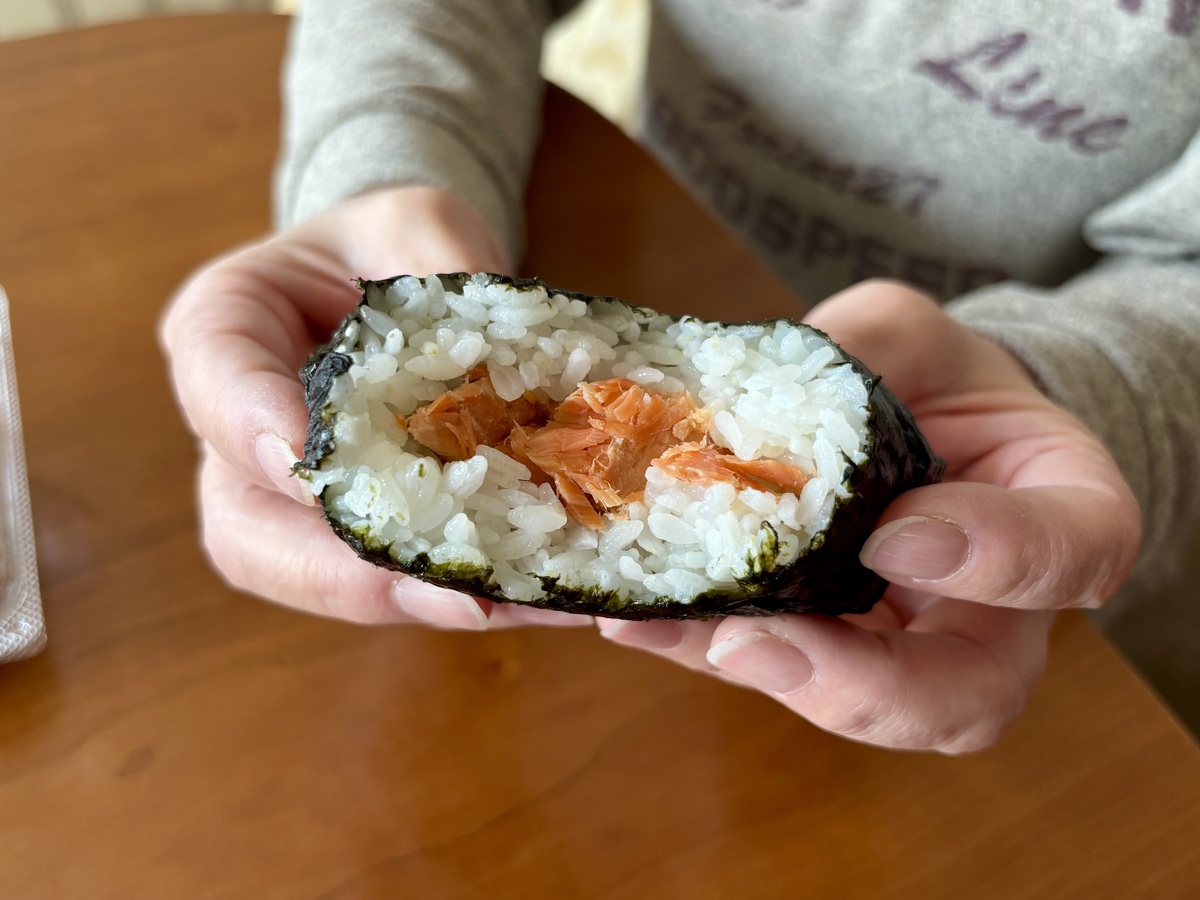 今回私は帰宅後いただきましたが、店舗の外にはイスとテーブルがあり、青空の下でおにぎりを楽しむこともできます。