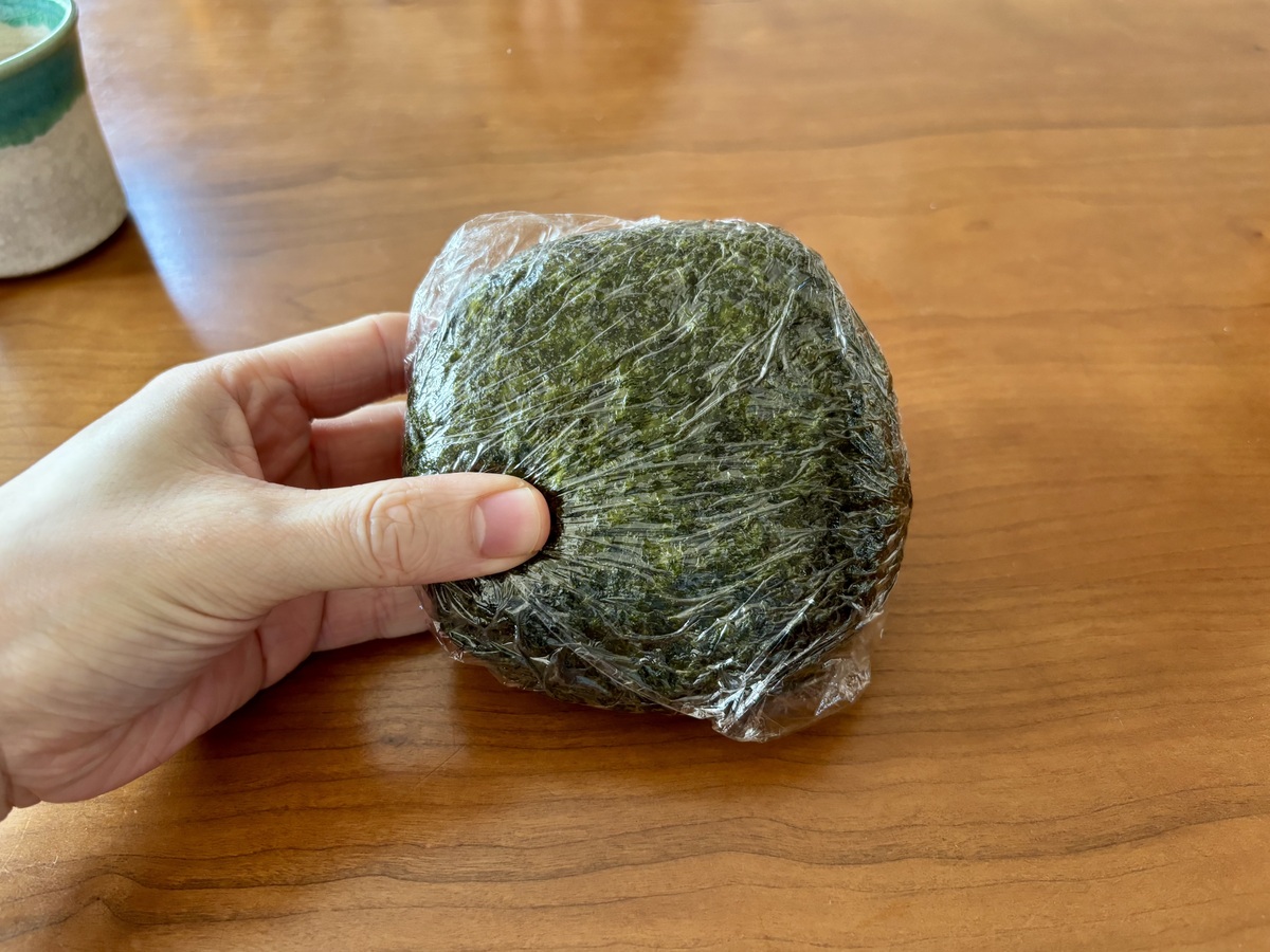 ごま油の香りが食欲をそそり、総重量300グラムのおにぎりですが、あっという間に胃袋の中へ……。
