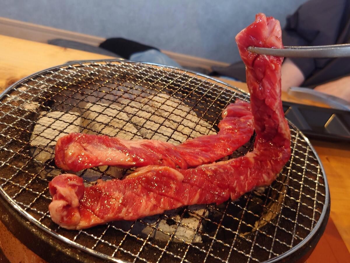 網にのっけて、8秒待ってレアで食べる!