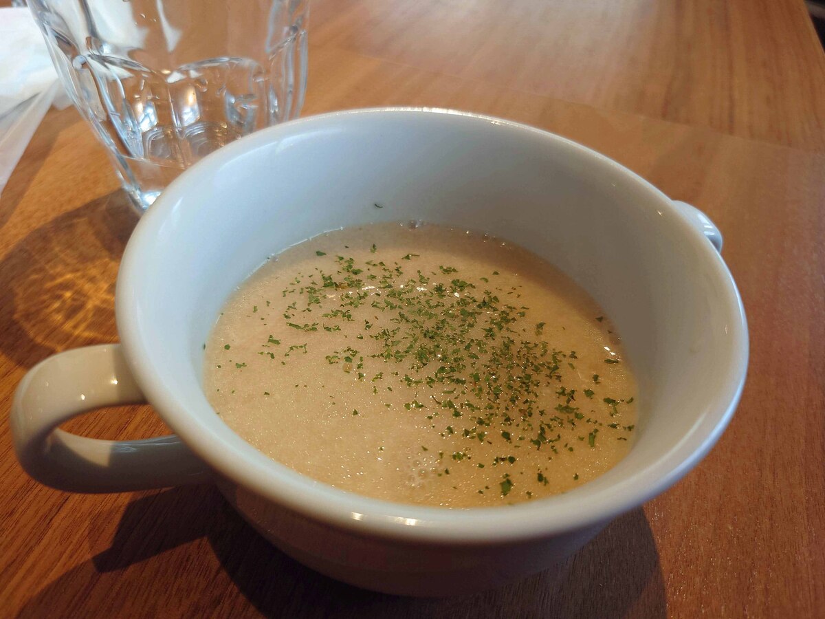 ランチにはライスかパンを選べる上にサラダやスープもセットになっています。