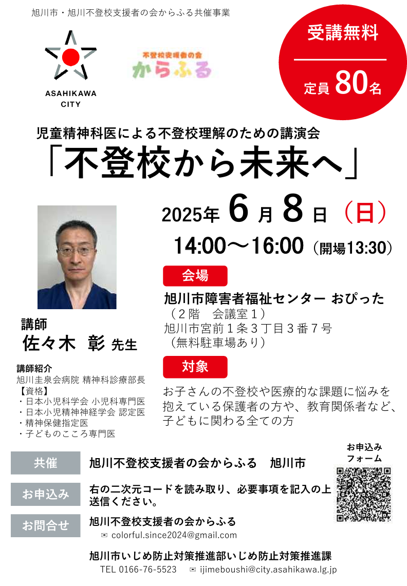 【6月8日】旭川で児童精神科医による不登校理解の為の講演会開催