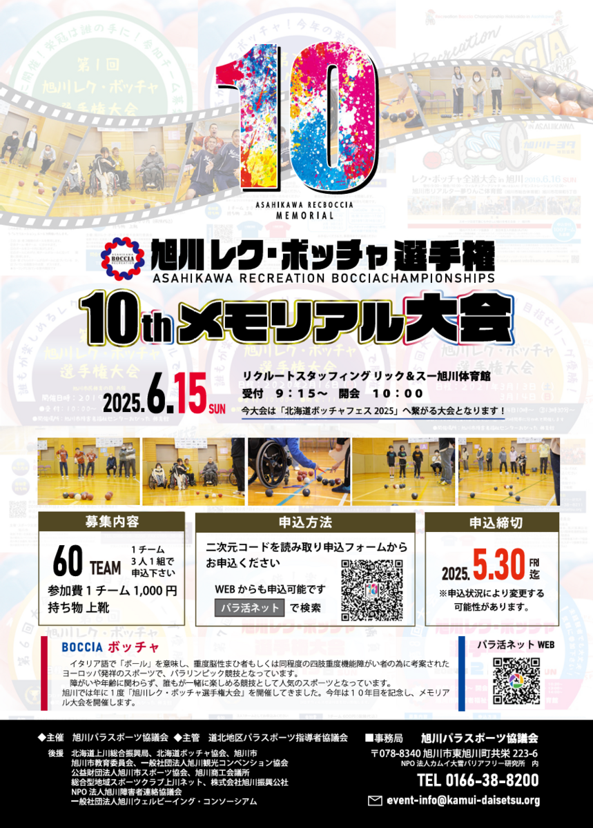 2025年6月15日(日)にリクルートスタッフィング リック&スー旭川体育館で『旭川レク・ボッチャ 10thメモリアル大会』が開催されます。