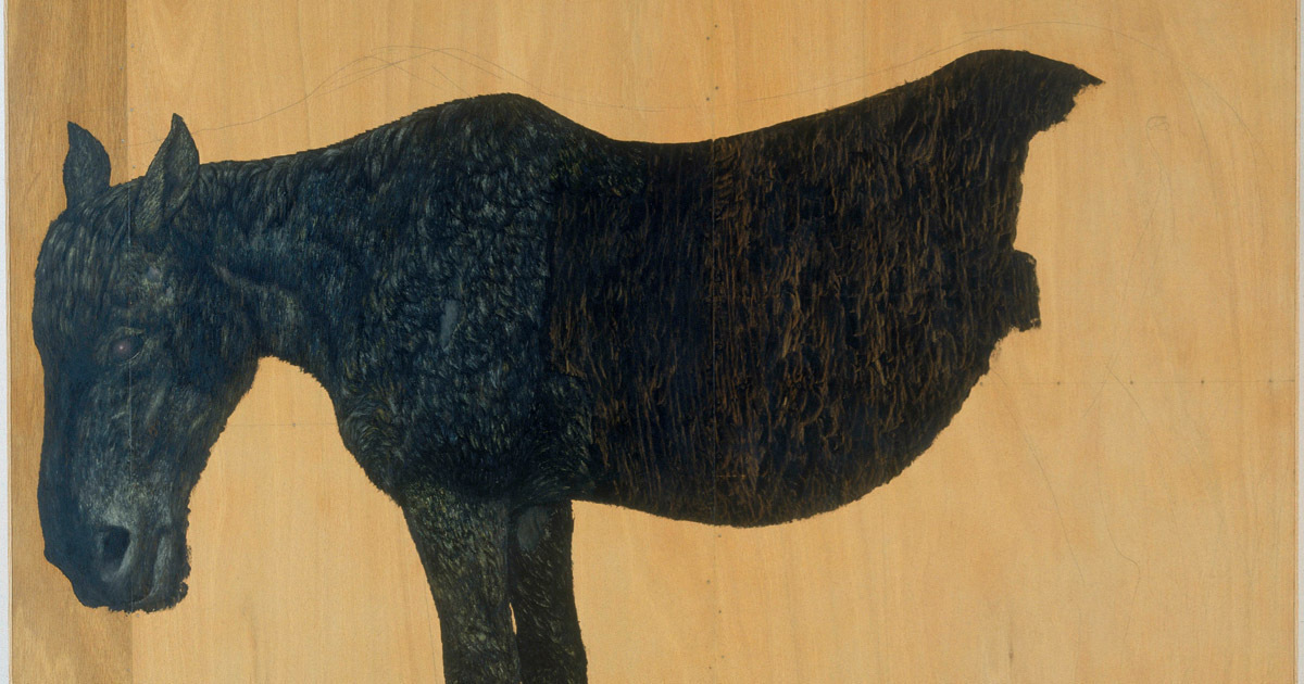 ベニヤ板にペインティングナイフで描く力強いタッチのリアリズム絵画で知られています。初期は労働者などをモチーフに暗いモノトーンで描いていましたが、その後、牛や農耕馬などの質感表現にこだわり、色彩や形への関心が移っていきました。