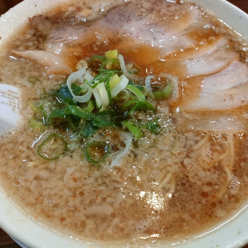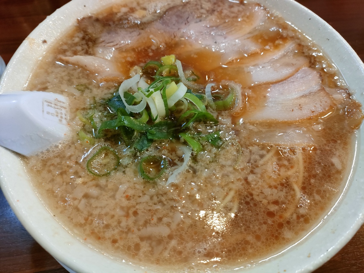 「ラーメン」を注文。醤油ベースのスープに背脂が投入されています。