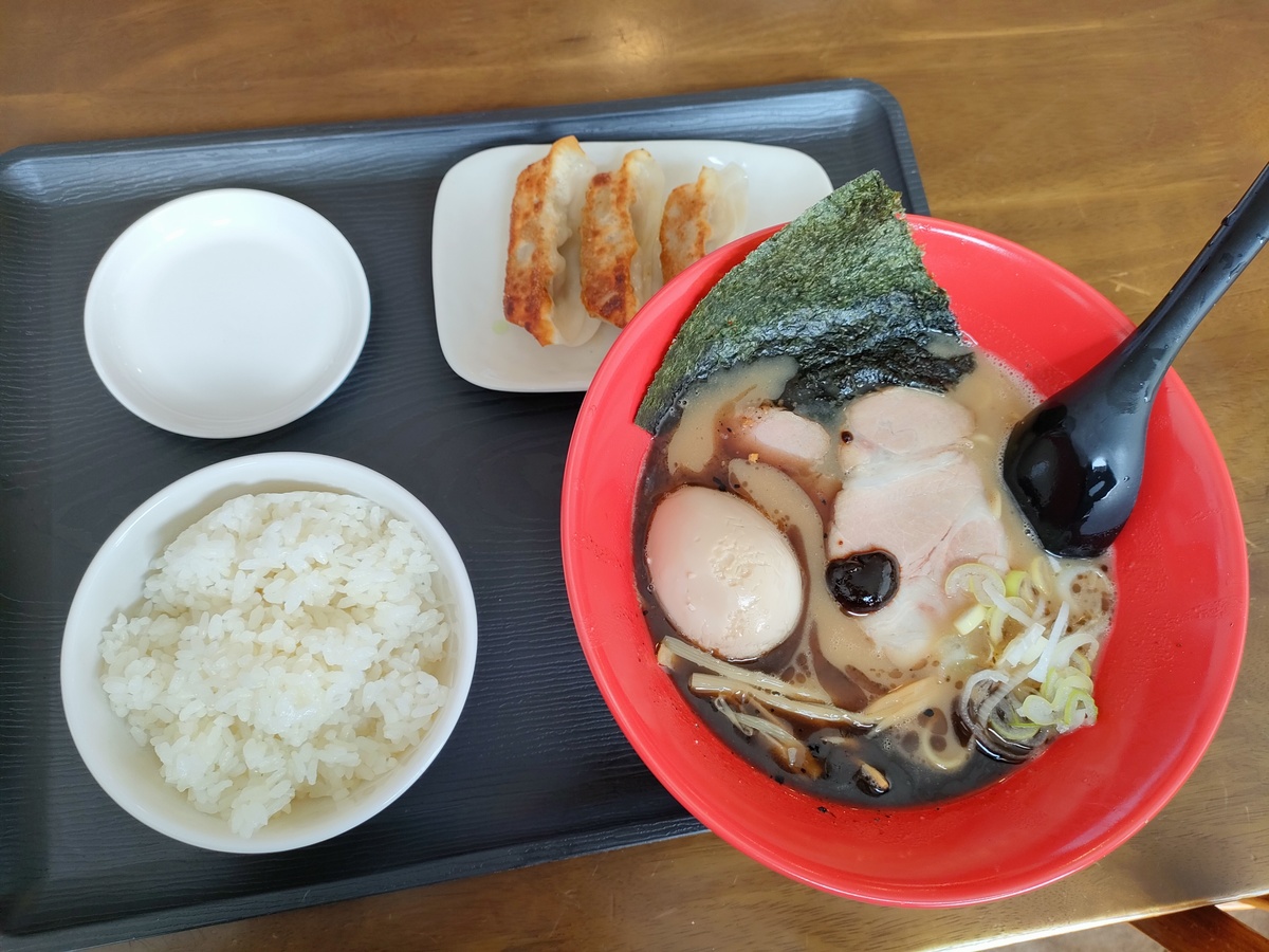 醤油マー油ラーメンとAセット(餃子+ライス)を注文しました。