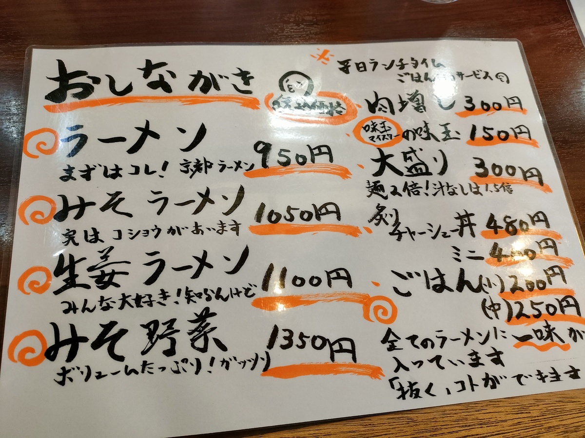 メニューは、味噌・塩・醤油と、幅広く取り揃えています。