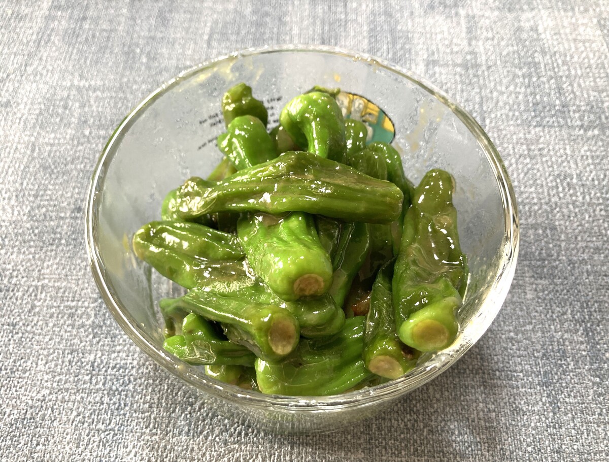 ししとうは味噌炒めにしていただきました。シャキッとした歯ごたえと程よい苦みが最高!