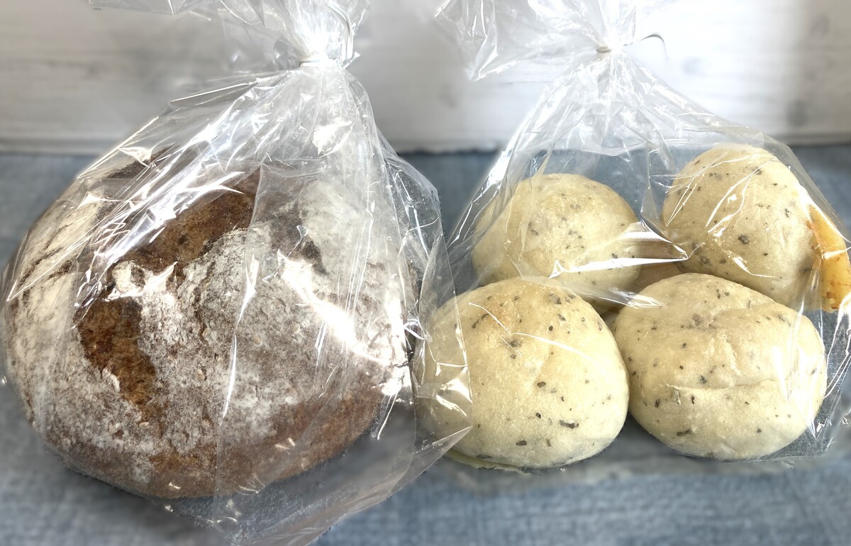 左 ソバ粉のカンパーニュ(白ごま)420円(税込) 右 チーズフォカッチャ280円(税込)