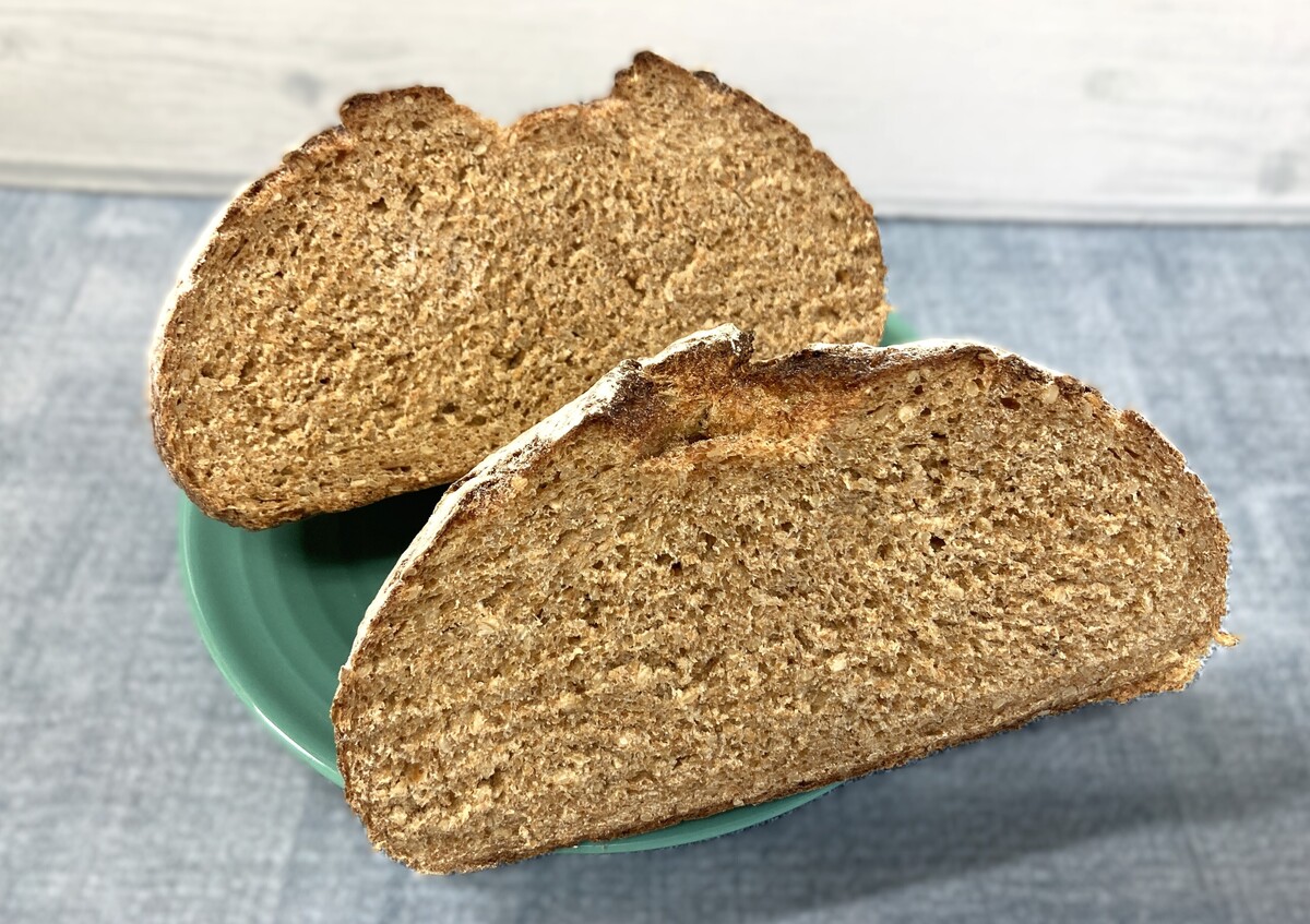 原材料は小麦、白ごま、そば粉、小麦麦芽、塩、パン酵母、麦芽エキスととてもシンプル。切ってみると断面も美しく、風味豊かでごまの食感が楽しめます。