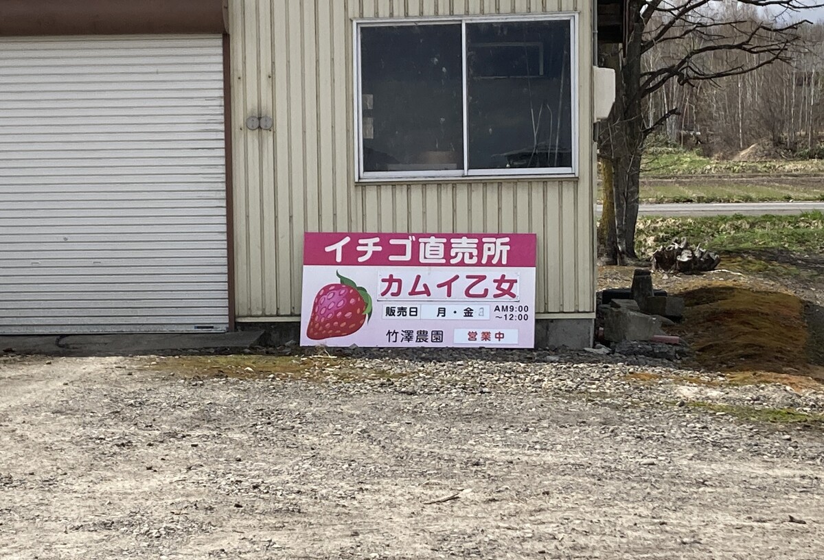 昨年も紹介した、東鷹栖のいちご直売所「竹澤農園」。先日通りかかった際に看板が見当たらず、直売所をやめてしまったのかも…と思いましたが、後日改めて再訪問し敷地の奥にある直売所を訪れたらしっかり営業中でした!