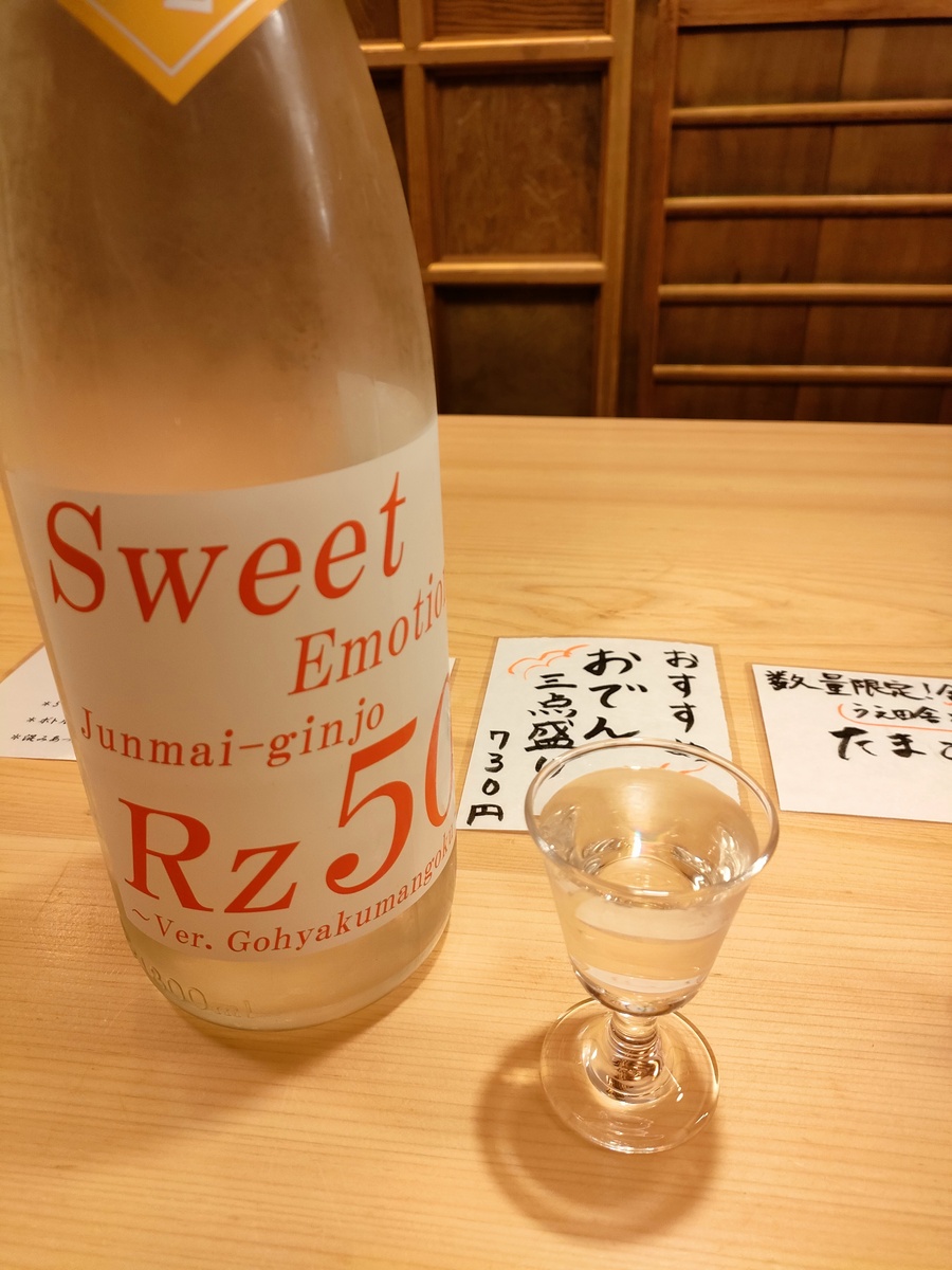 今回いただいたのは、秋田の「Rz50 純米吟醸 Sweet Emotion」というお酒です。
