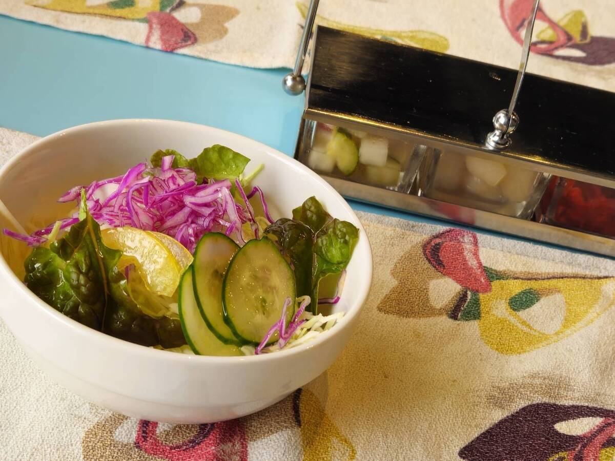 First comes the set salad—piled high in a bowl with a tangy dressing that’s spot-on.
