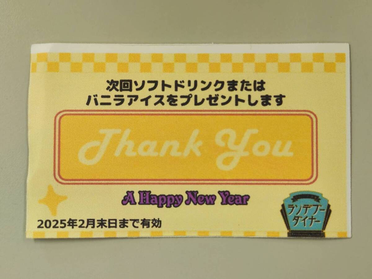 After paying, you receive a service coupon for either vanilla ice cream or a soft drink!