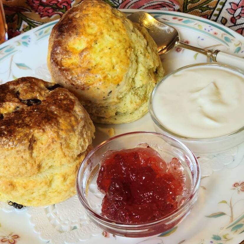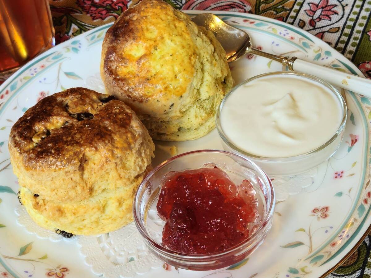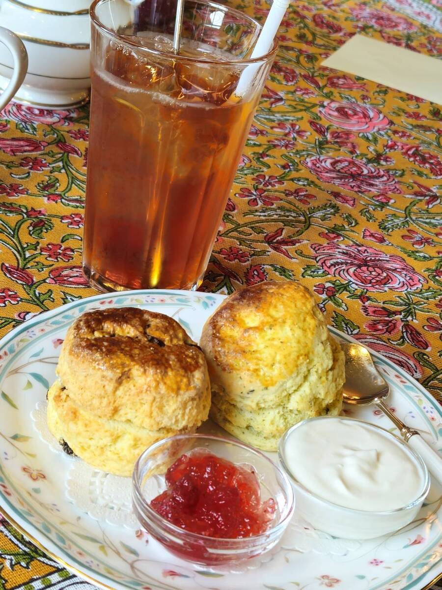 いちごの酸味と甘さ両方が感じられるジャムととろける食感のクリームが添えられていて、少しずつスコーンに付けながらいただきます。