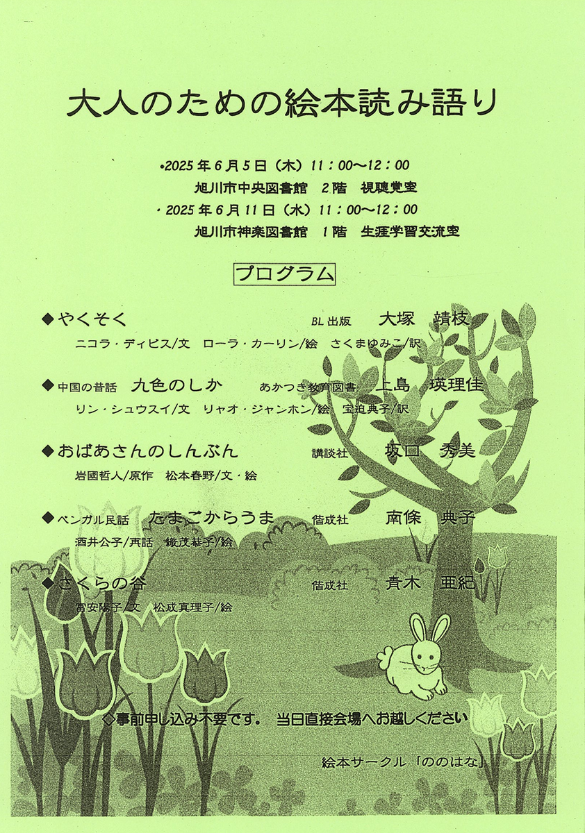 【6月5日】旭川市中央図書館で大人のための絵本読み語り開催