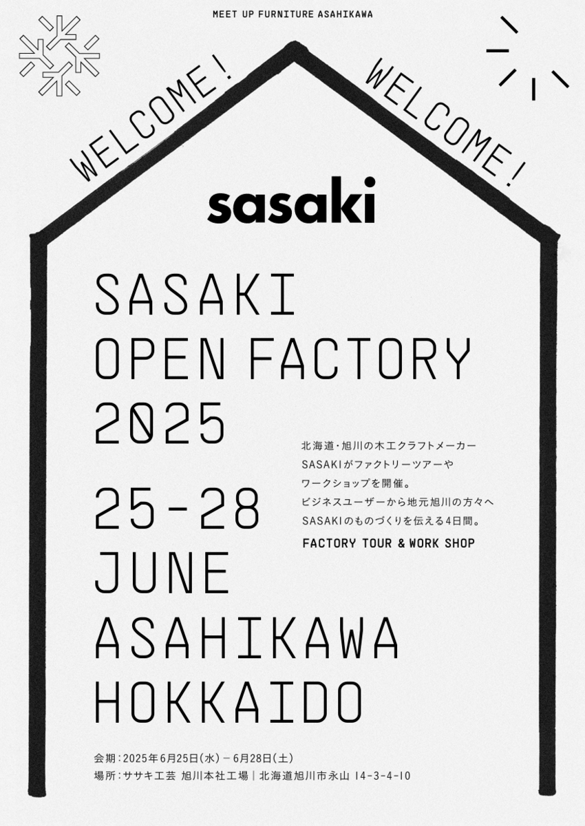 2025年6月25日(水)から28日(土)まで旭川市のササキ工芸で『SASAKI OPEN FACTORY 2025』が開催されます。