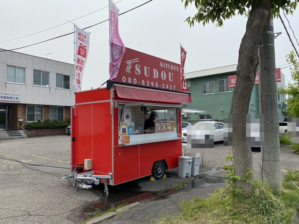 「KITCHEN SUDOU(キッチンすどう)」は、昭和23年創業の須藤製麺工場の敷地内で営業する動かないキッチンカー。