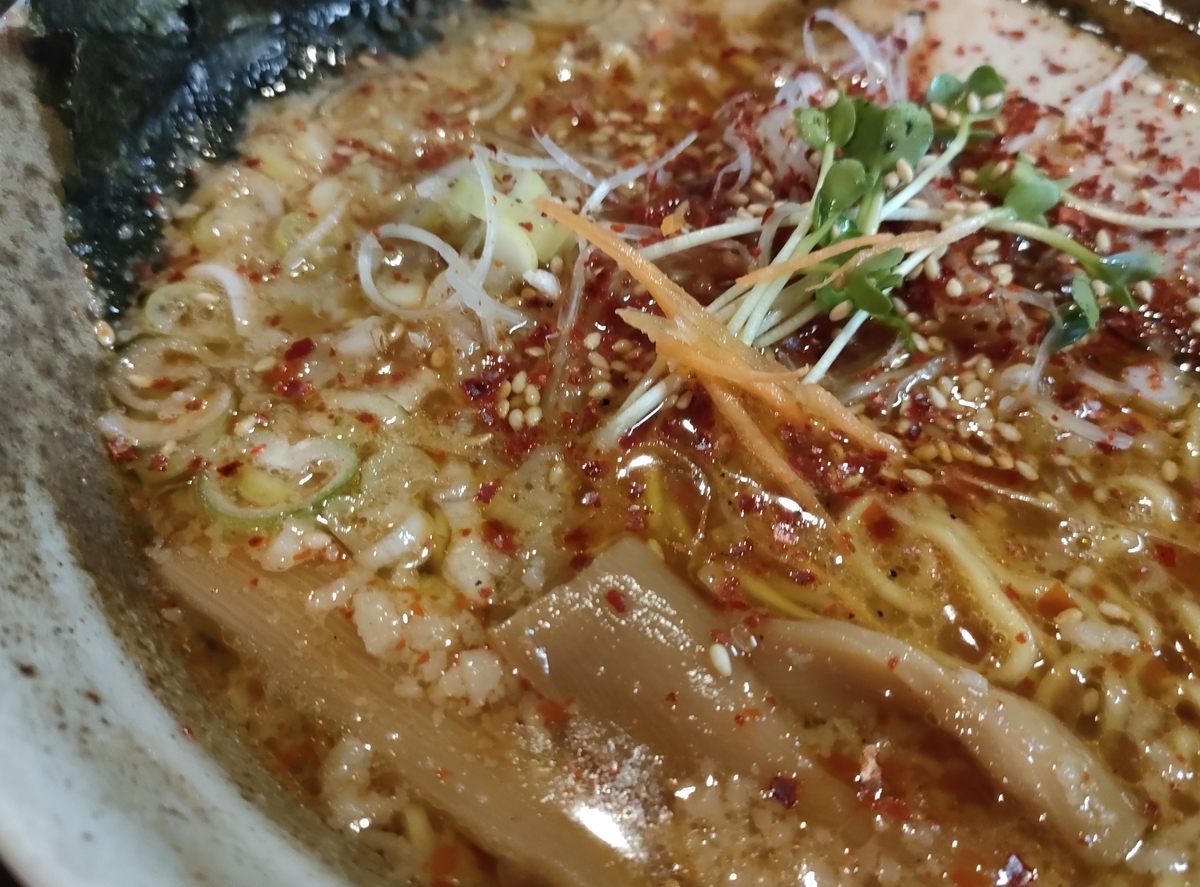 まず、なんと言ってもこのスープ。ひとくち口に含むとまろやかな甘さがあり、後からピリッとした辛さが追いかけてくる奥深さがあるんですよ。