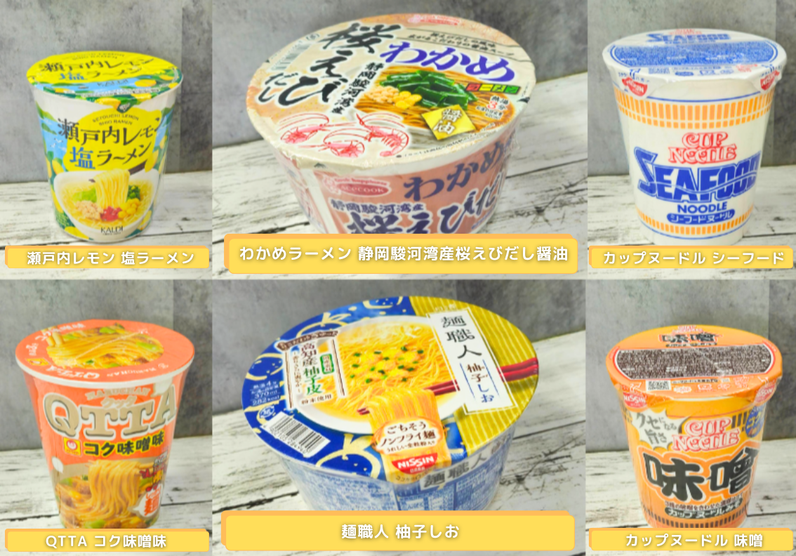 6種類のカップ麺を一つずつじっくり試食し、どれが一番美味しいか投票で決めていきます!