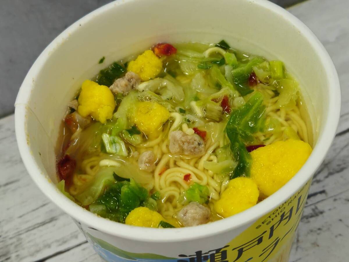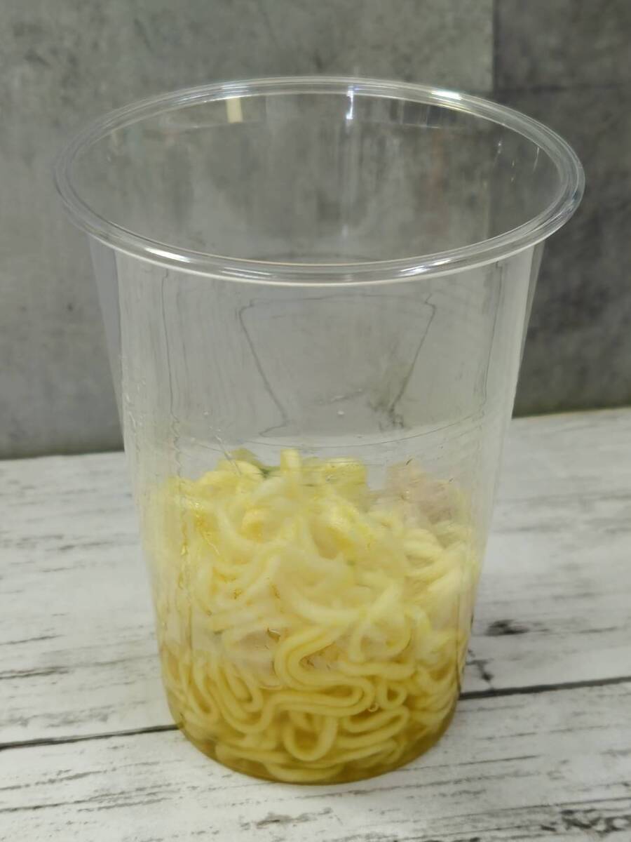 ちなみに試食はこんな感じにプラコップに入れ、スープも具材もしっかり吟味。