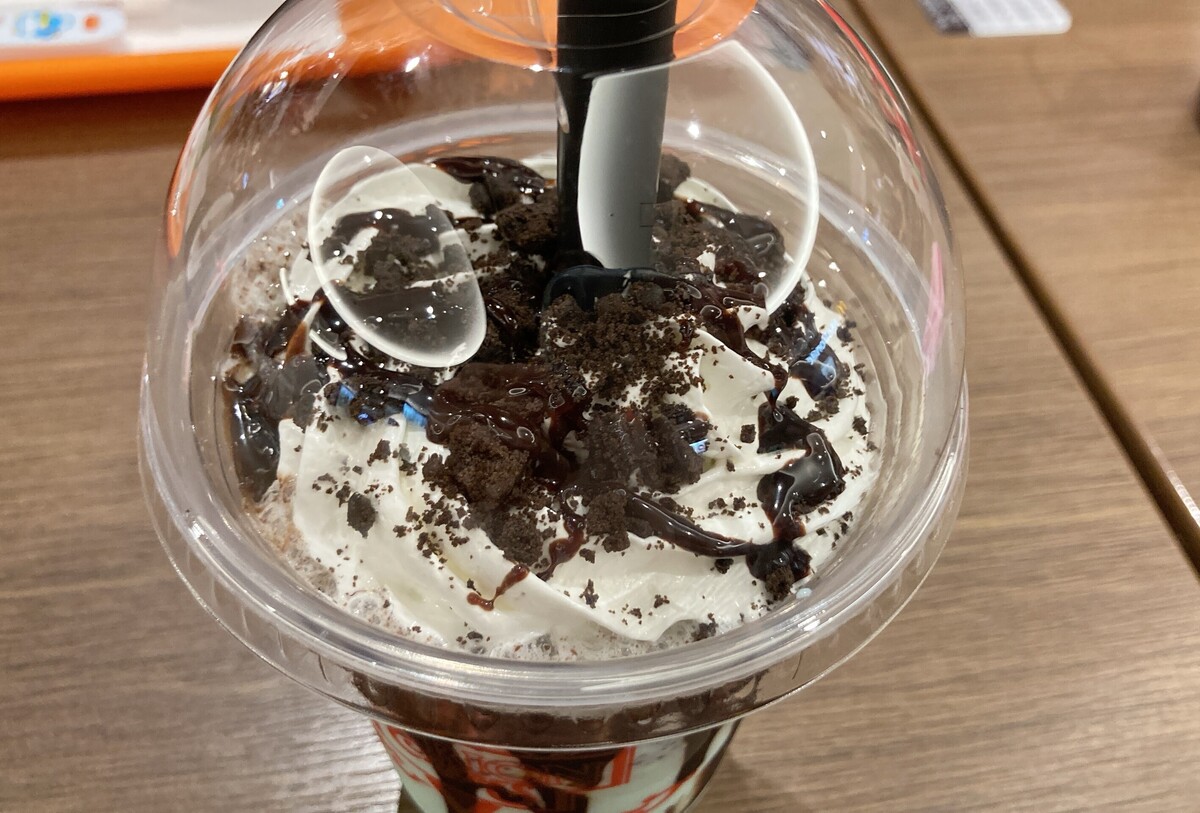 底にチョコチップとクッキーが沈んでしまうので、太めのストローでも吸いきれないことがありました。飲む前にしっかりかき混ぜると、最後まで美味しく楽しめますよ。