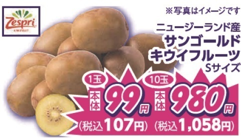 黄色い果肉のサンゴールドキウイ1玉税込価格107円!