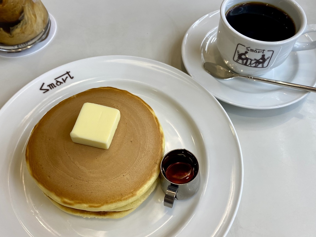 特にモーニングセットのメニューはないのですが、1番人気で有名なのが「ホットケーキ 650円」です。