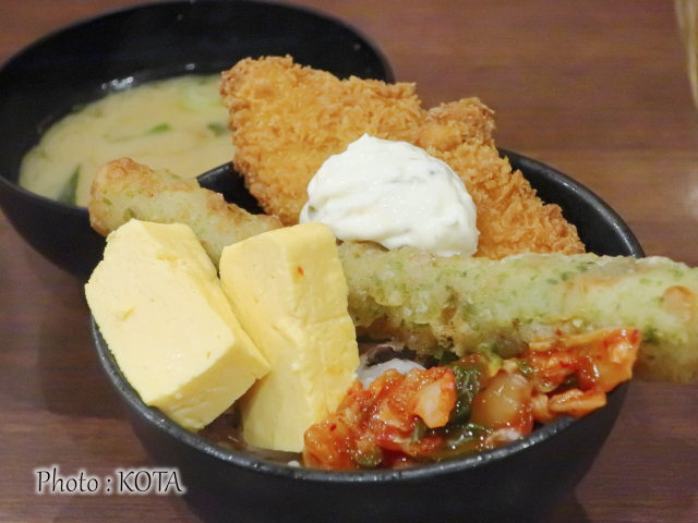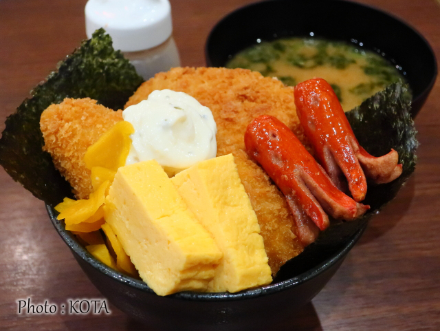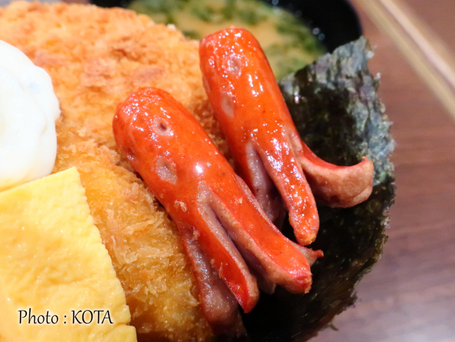 どんなコンセプトでタコさんウインナーになったのかは不明だが、こんなふうに単刀直入に楽しい丼は珍しいかも。