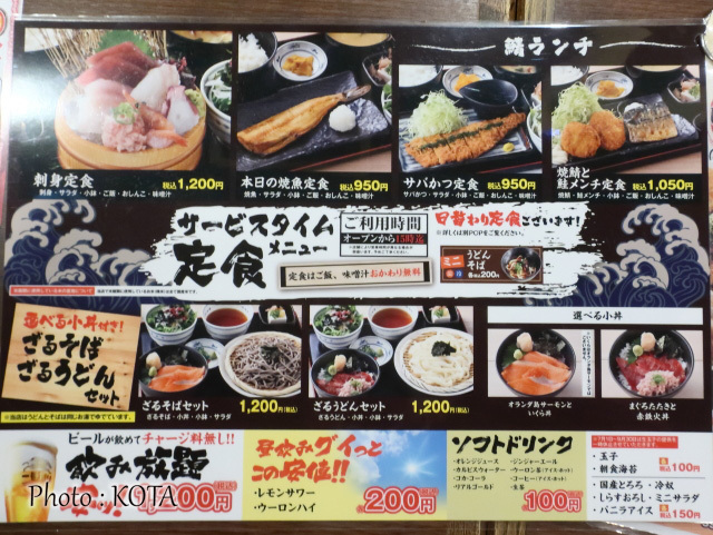 あ、KOTAのネームで見えなくなってしまったが、左下、飲み放題は90分1200円。安い!!