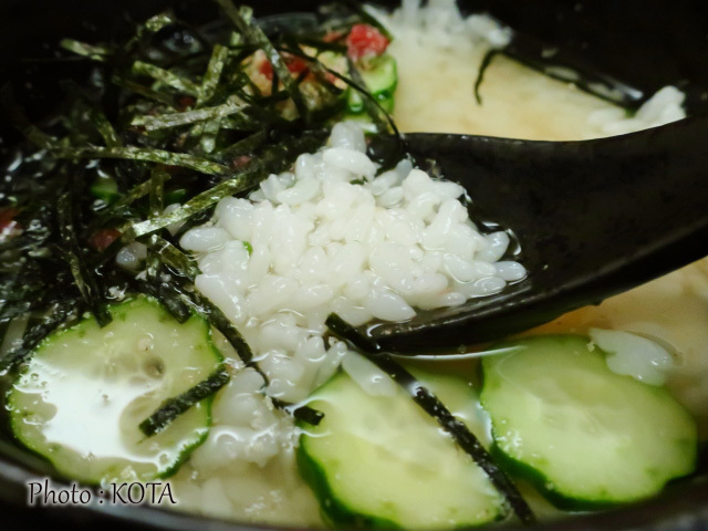 香り良い出汁の中で、冷たさにきゅっと締まった米粒がさらさら。