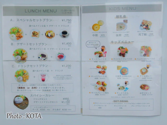 ランチメニューはもちろんだが、キッズメニューや離乳食まで用意していただけるのが同店ならではのサービス。