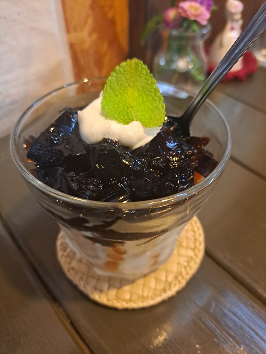 珈琲屋さんならではの、キリっとした味のコーヒーゼリーと、
