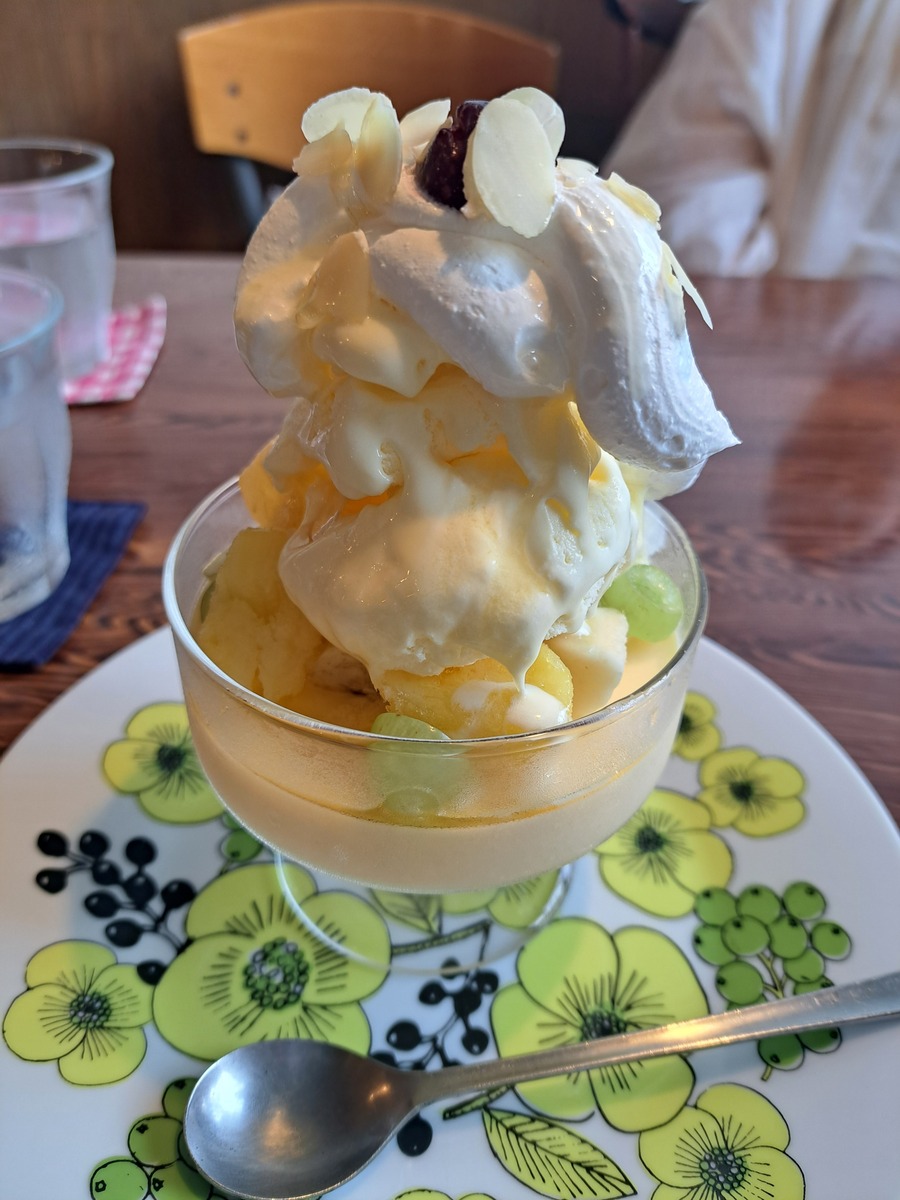 これでもか!!とぐらいに、アイスや生クリーム、果物が盛り付けられています!