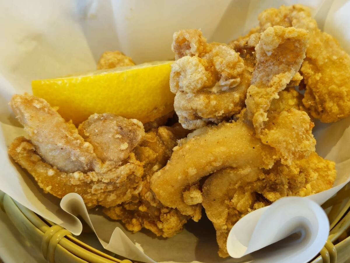 パリッとした皮面としっかりめの衣で、中はかなりジューシーで肉汁が溢れ出てきます。