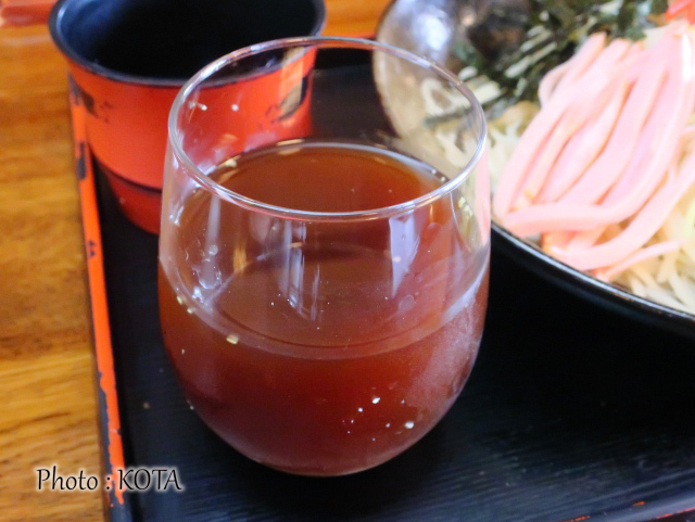 グラスには、おろし生姜を溶いたそばつゆが。