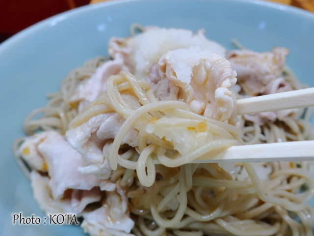 柚子ポン酢の清涼感はもとより、そばに豚しゃぶは軽快にして食べ応えは十分。