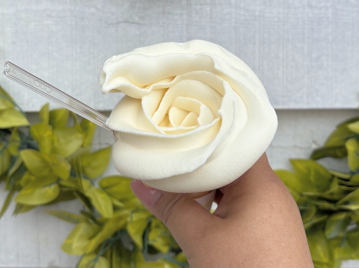 思わず誰かに見せたくなるようなお花の形のソフトクリーム。