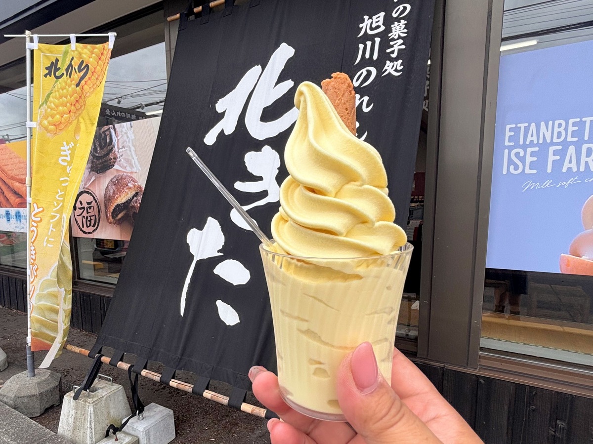 その、あさひかわ菓子博で人気を博した「とうきびソフト」が、こちらのお店で販売が決定したとSNSで見かけました。