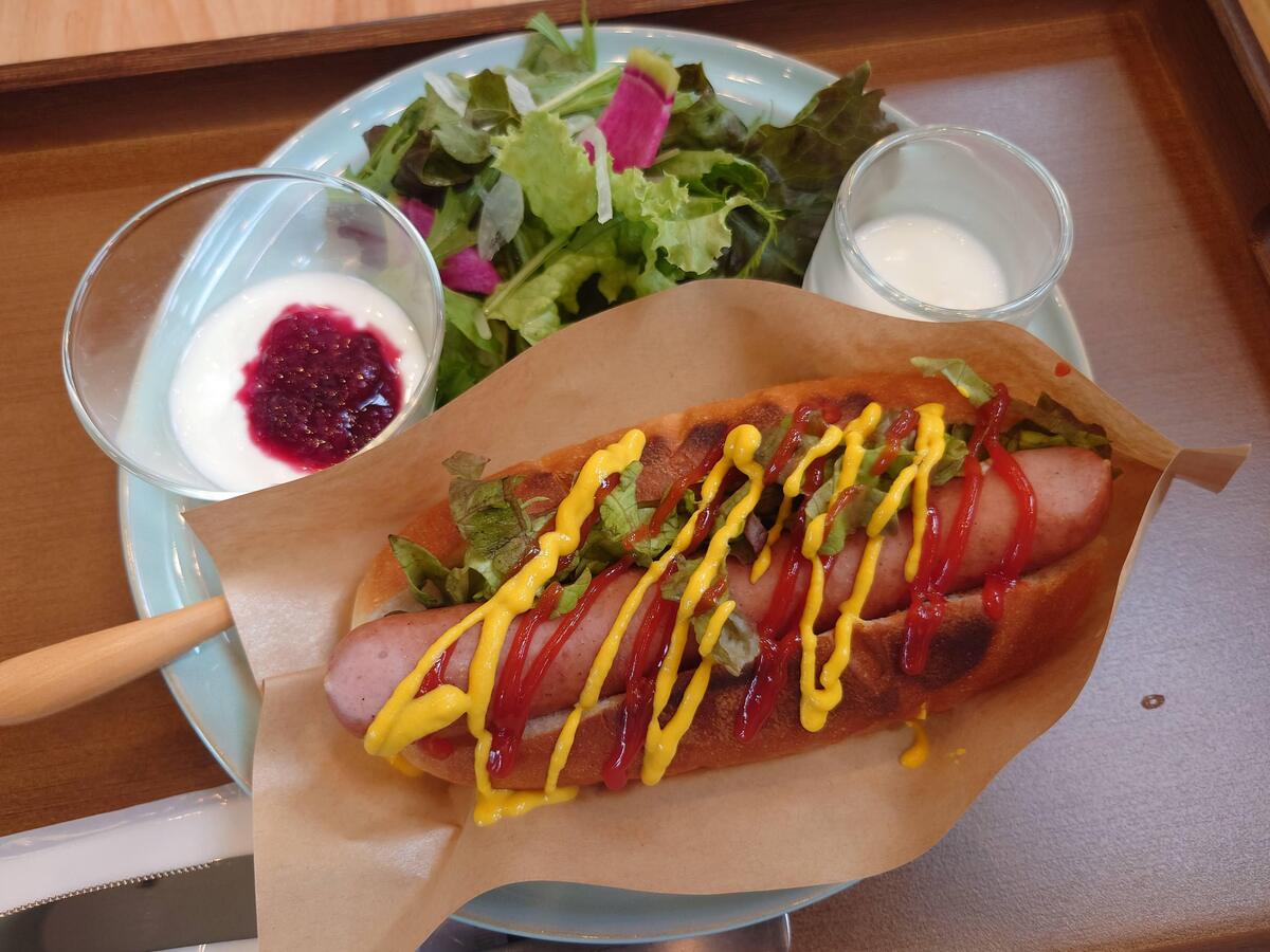 ホットドッグ&サラダプレート。レギュラーホットドッグで1200円。