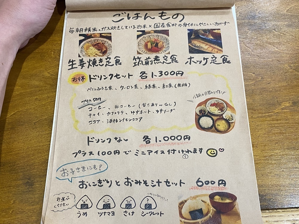 ごはんは、地元のお米を毎朝精米してガスで炊いているそうです。他に使用している食材もすべて国産。どの料理もやさしい味付けで、カラダに優しい定食ですね。